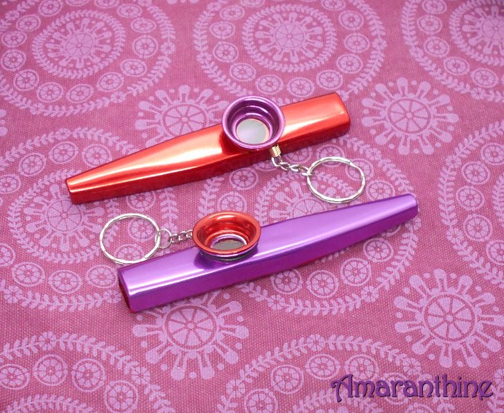 Stylish aluminium Kazoos, with a keyring! This gives a handy ring to be able to clip the Kazoo onto your bag or a lanyard to conveniently carry it with you.