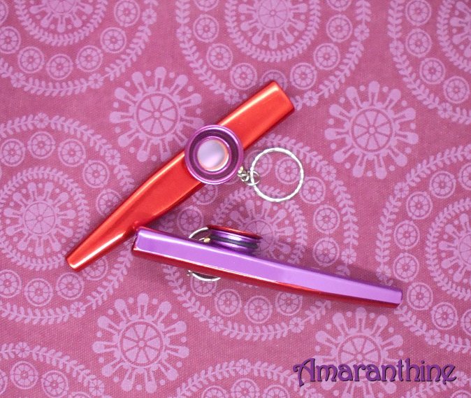 Kazoos are the official musical instrument of Red Hatters!! Simply hum into the larger end to the tune you want. You need to hum or make a vibrating sound, rather than just blowing into it. Great fun!