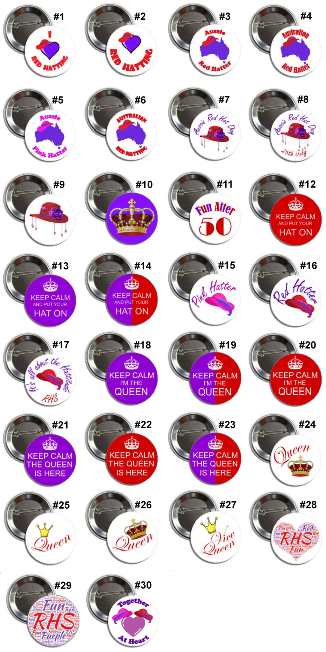 3cm badges/magnets (about 20c piece size). Choose 5 designs.