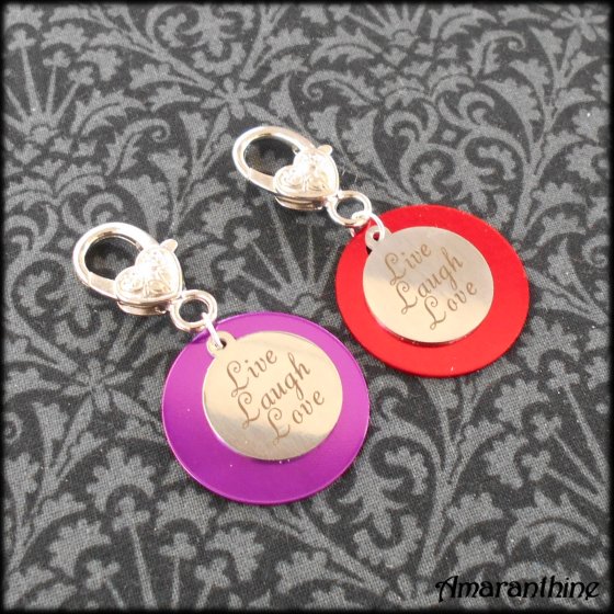 Handmade clip for adding to a handbag or keyring – featuring “Live Laugh Love” charm.