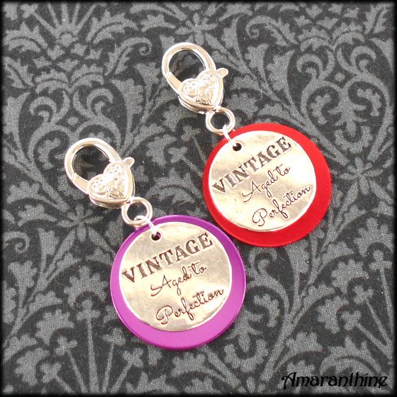 Handmade clip for adding to a handbag or keyring – featuring “Vintage, Aged to Perfection” charm.