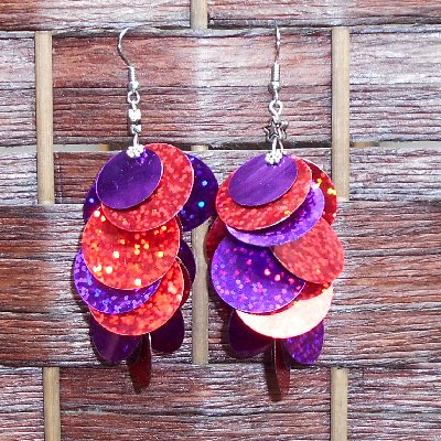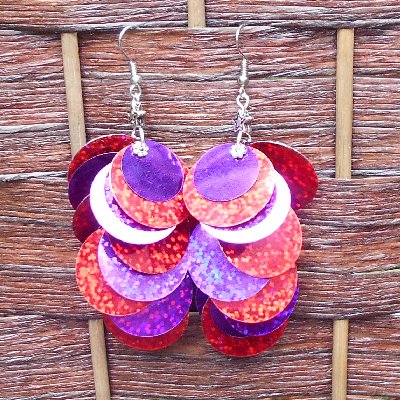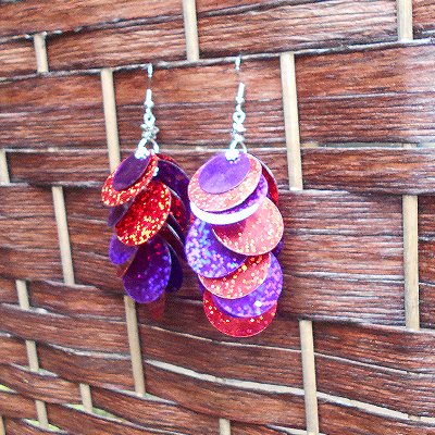 Handmade earrings, featuring glittery red and purple paillette sequins. Very lightweight!