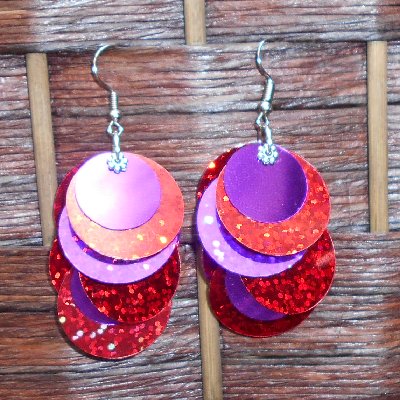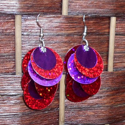 Handmade earrings, featuring glittery red and purple paillette sequins. Very lightweight!