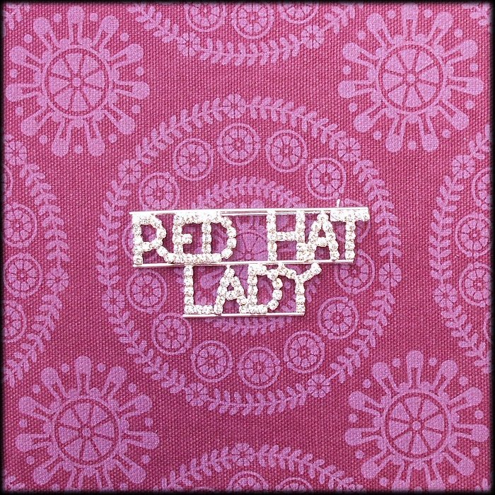 Beautiful rhinestone bling brooch pin for ladies of the Red Hat Society!