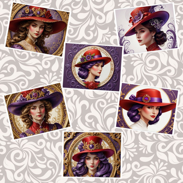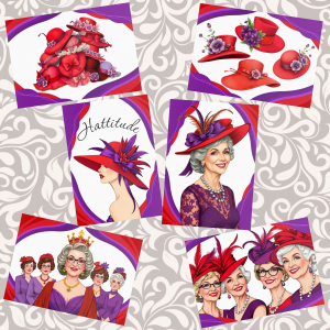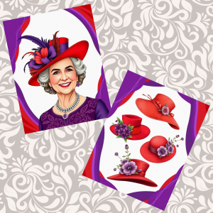 Glossy Red Hatter themed blank greeting cards.