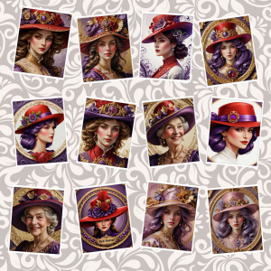 Set of 10 Glossy Red Hatter themed Postcards. 1 of each design.